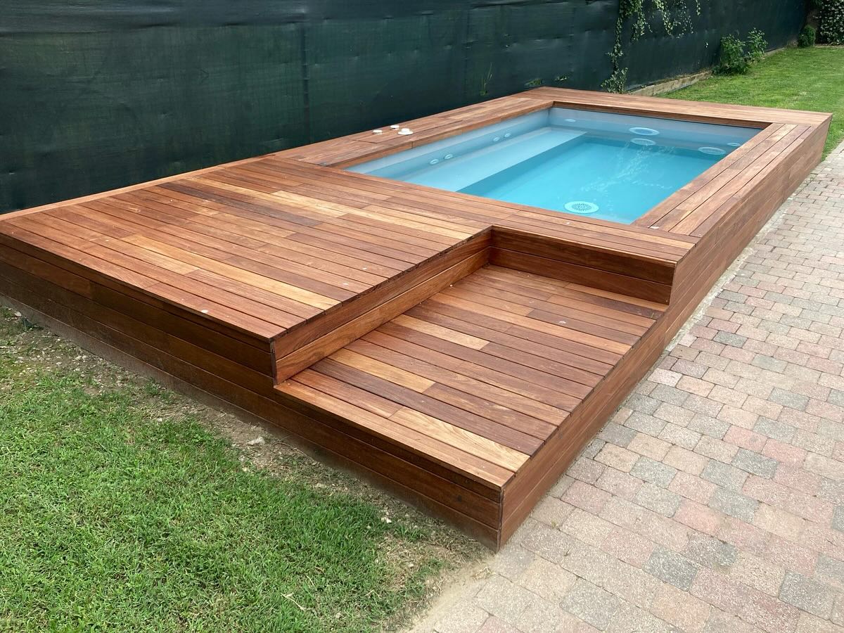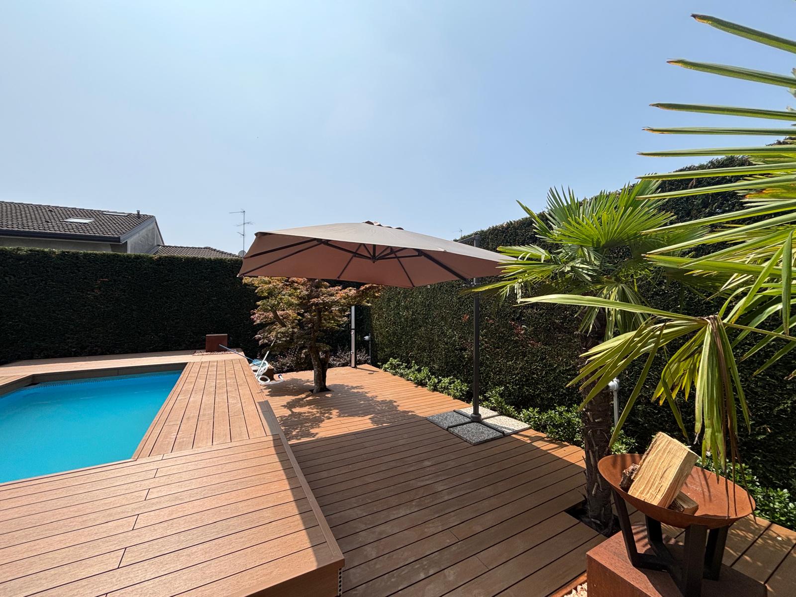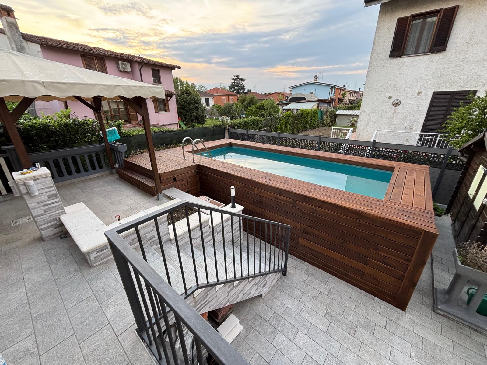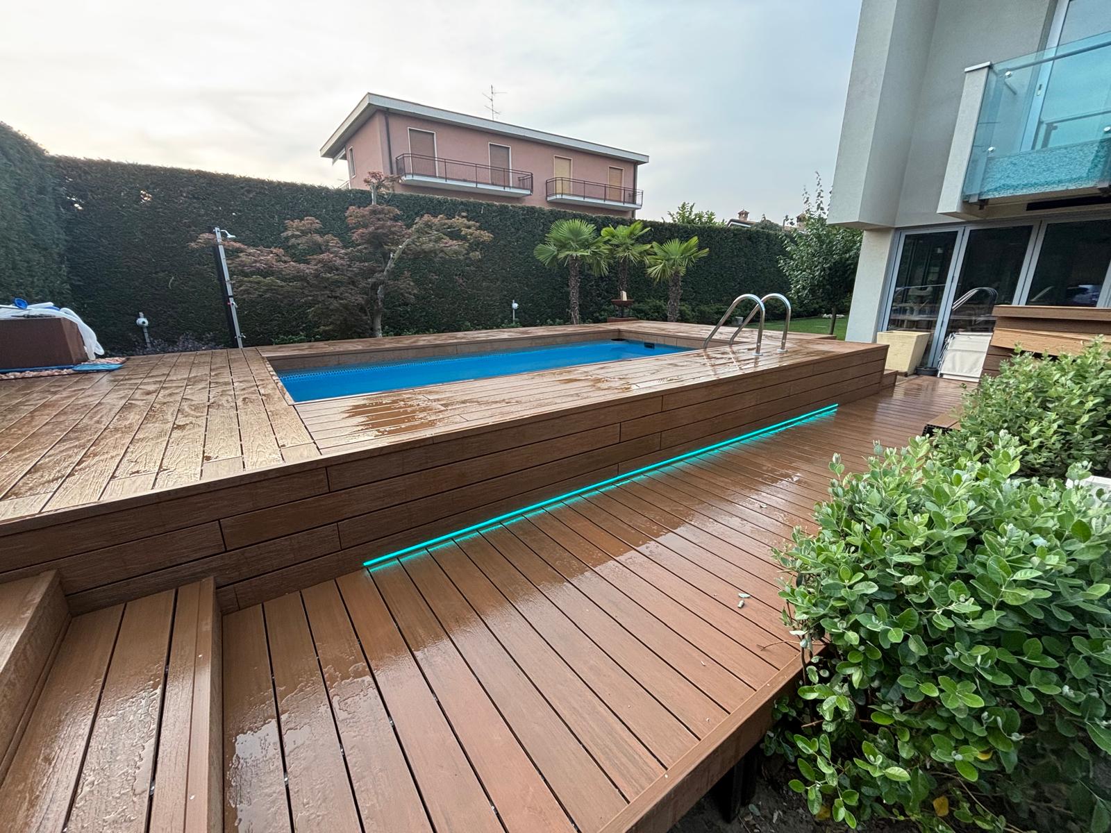 Rivestila in legno con i moduli Yourwood! Rendila elegante e funzionale creando solarium e nuovi spazi a bordo piscina, proprio come una piscina interrata!