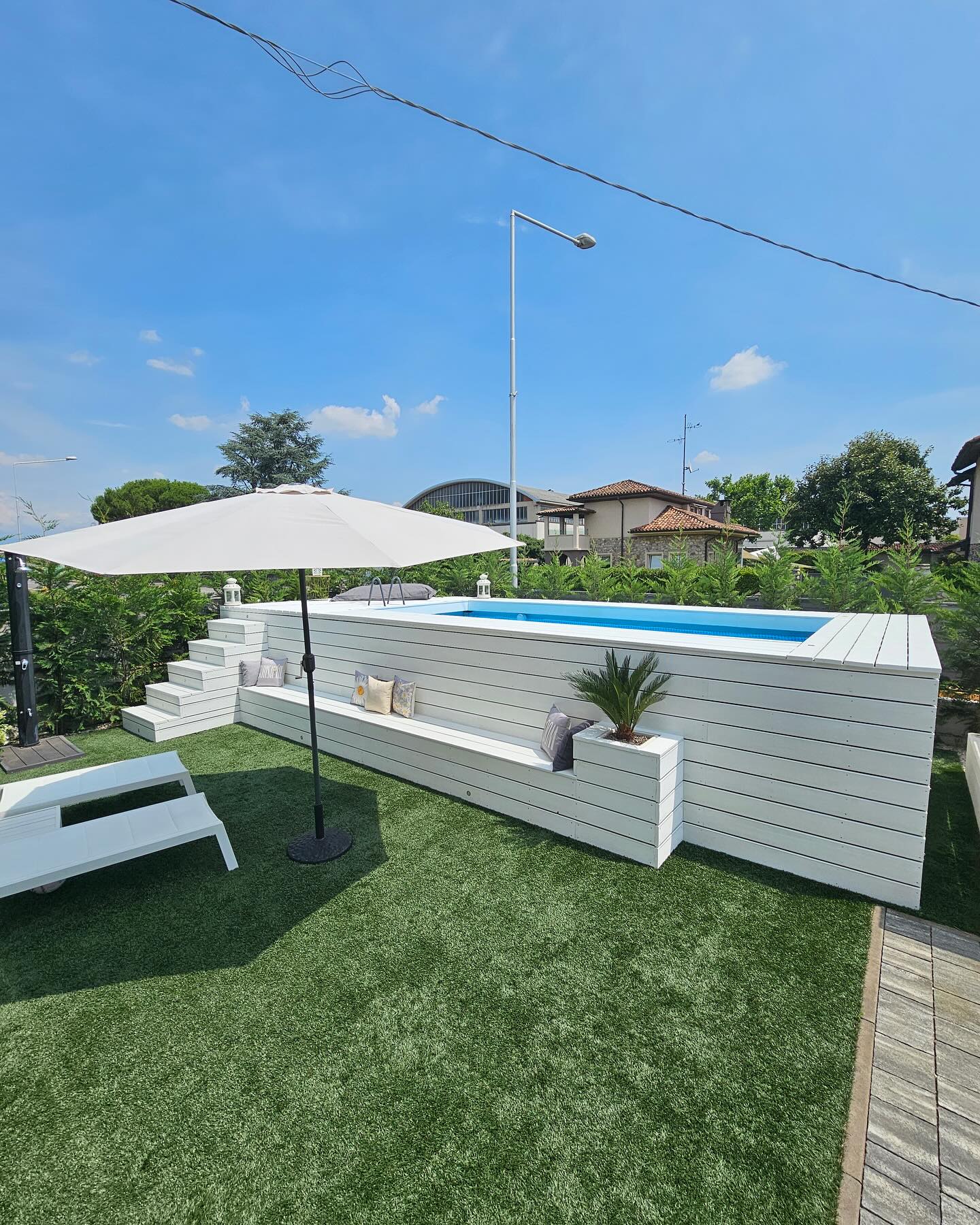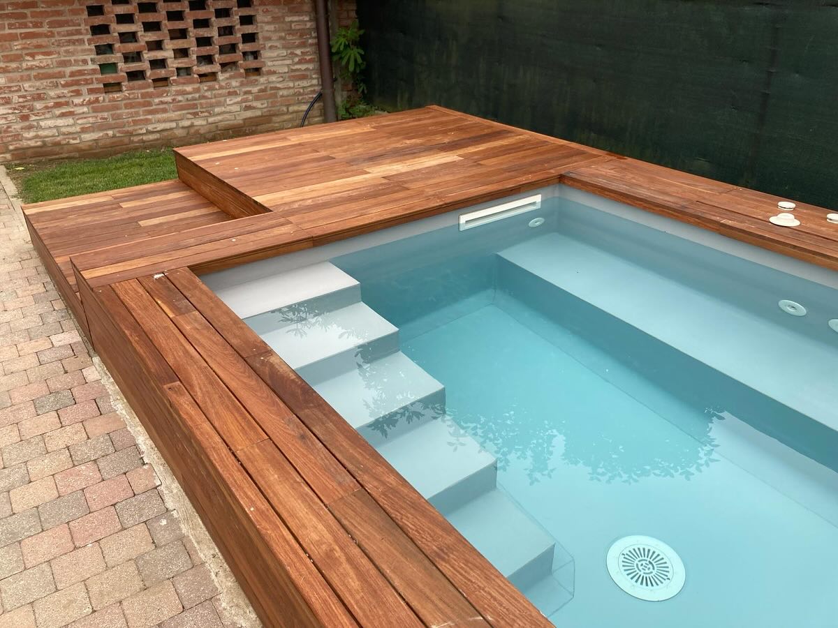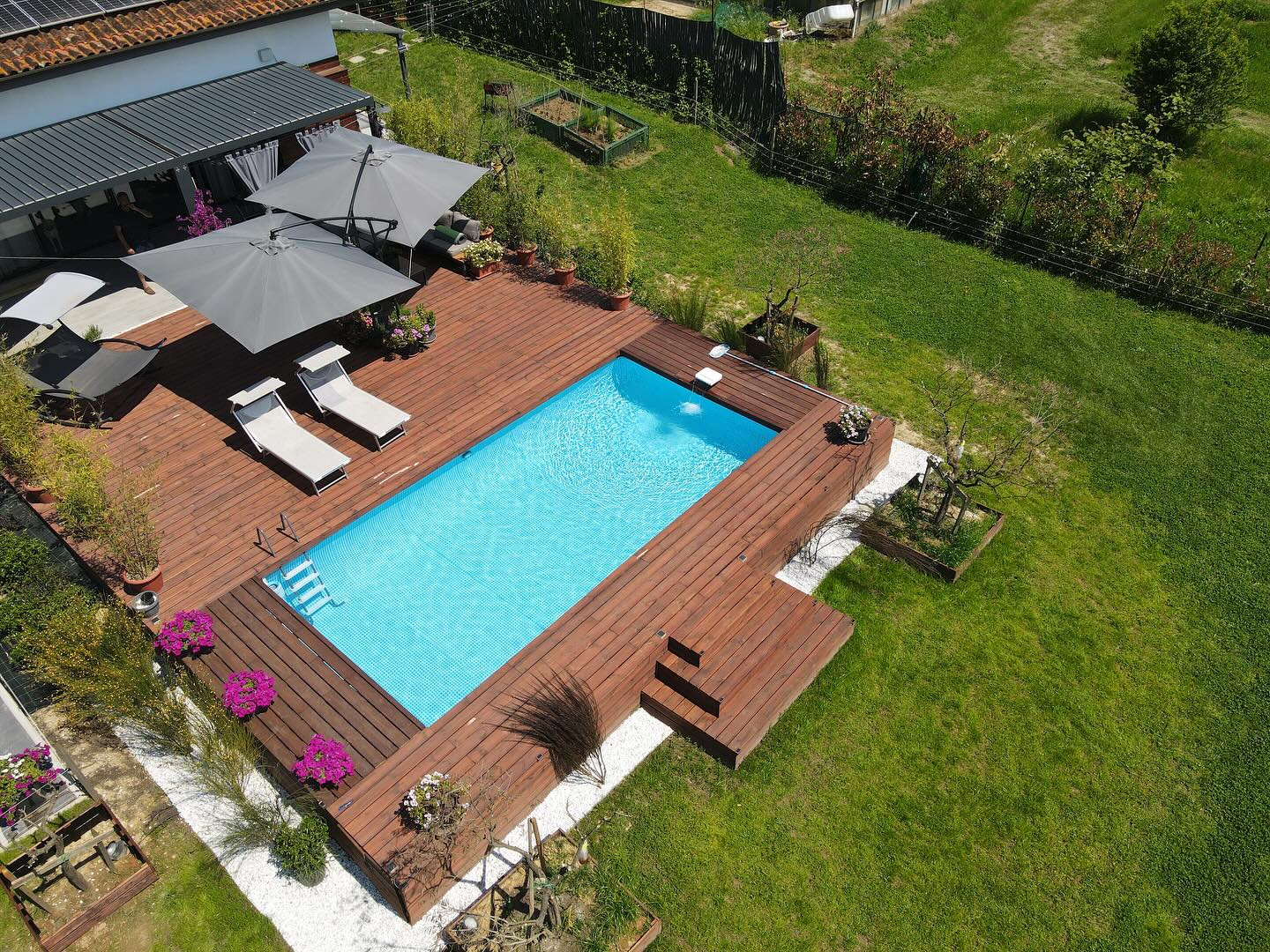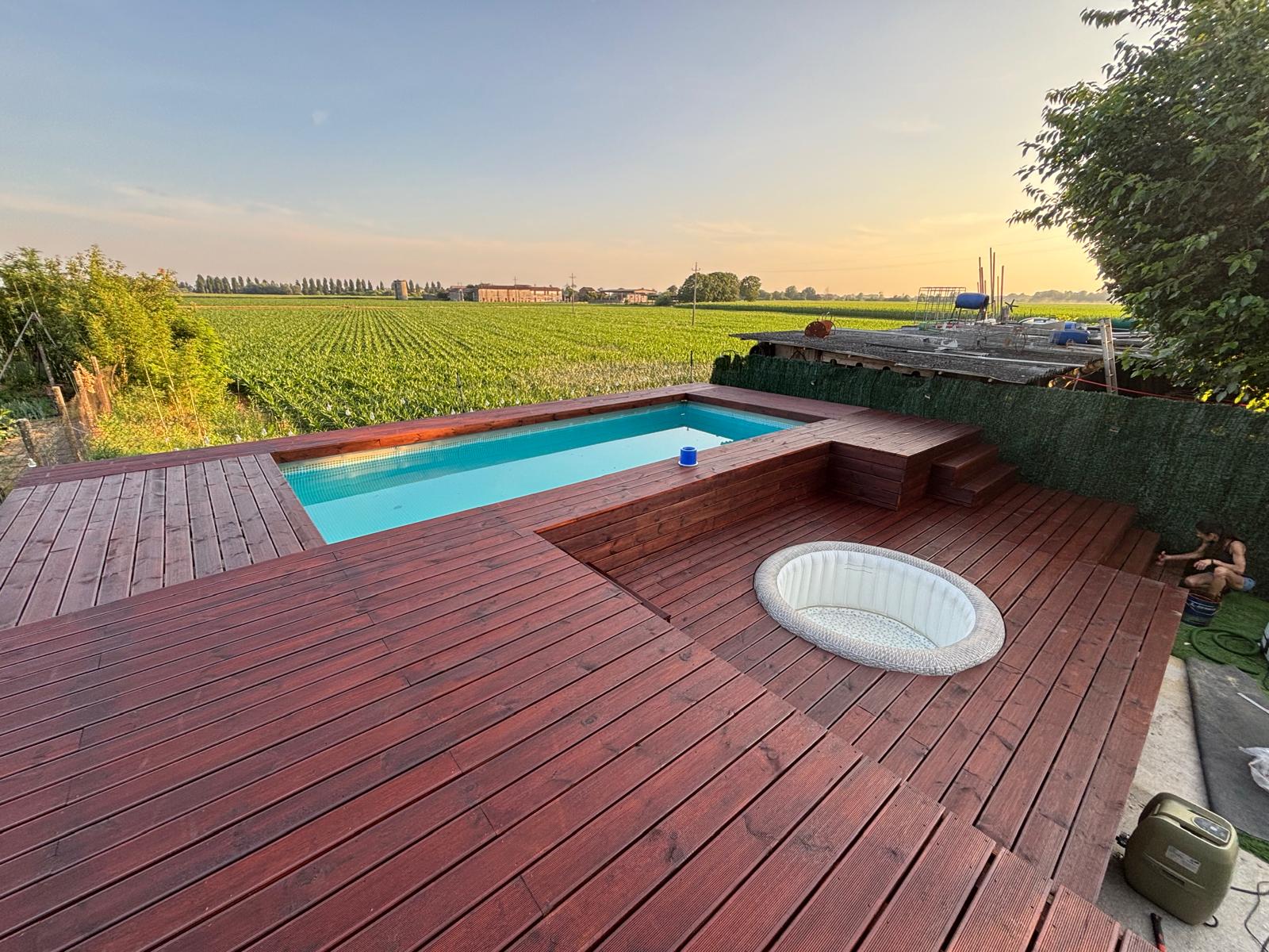Rivestila in legno con i moduli Yourwood! Rendila elegante e funzionale creando solarium e nuovi spazi a bordo piscina, proprio come una piscina interrata!